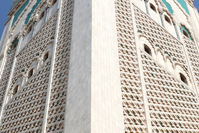 And this is a detail of side walls of the minaret of the Hassan II Mosque, also in white marble.
